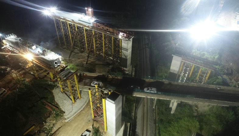 “前置鋼導梁和鋼蓋梁構(gòu)成一個整體,然后再采用分級拖拉滑移頂推施工,可以有效解決單跨頂推的難題,另外臨近外腹板位置設置導梁,可以保證傳力,確保頂推作業(yè)順利完成,對我們上部結(jié)構(gòu)的施工具有重要意義。”現(xiàn)場管理組總工母樹然表示。