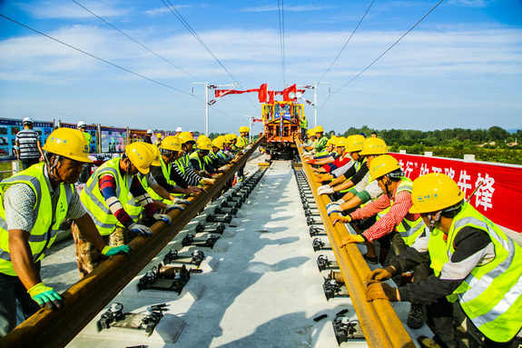 本站北京訊(通訊員 劉書培 唐承光 譚振龍) 9月24日17時(shí)58分,在京沈高鐵北京至承德段興隆西站施工現(xiàn)場(chǎng),隨著現(xiàn)場(chǎng)負(fù)責(zé)人一聲“龍口已合”,至此,歷時(shí)4年之久的京沈高鐵全線軌道鋪通。