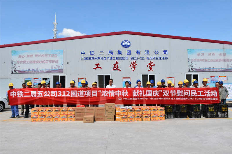 (蘇州訊 朱紅洲)在國(guó)慶、中秋雙節(jié)即將來(lái)臨之際,中鐵二局五公司312國(guó)道項(xiàng)目部為感謝一線參建人員對(duì)工程建設(shè)的辛勤付出,確保節(jié)日里堅(jiān)守一線、辛勤奮戰(zhàn)的廣大參建人員度過一個(gè)愉快、和諧的節(jié)日。9月28日上午,項(xiàng)目部組織開展了“濃情中秋 獻(xiàn)禮國(guó)慶”雙節(jié)慰問一線活動(dòng)。