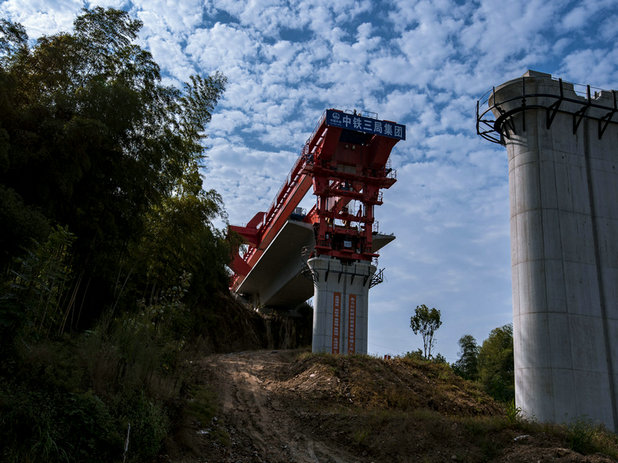 湖北黃岡訊 9月28日8時(shí)28分,隨著900噸重的箱梁穩(wěn)穩(wěn)落在黃岡方向王上塆大長隧道出口鋪爾塆雙線特大橋橋墩,標(biāo)志著黃黃高鐵蘄春段鋪爾塆特大橋首孔箱梁架設(shè)成功,建設(shè)步伐由此進(jìn)一步加快。