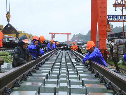 假日期間冒雨進(jìn)行軌排釘聯(lián)生產(chǎn)