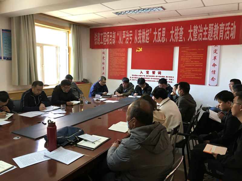 圖為鐵路工程項目部召開“從嚴(yán)治虧、從我做起”主題教育動員會現(xiàn)場