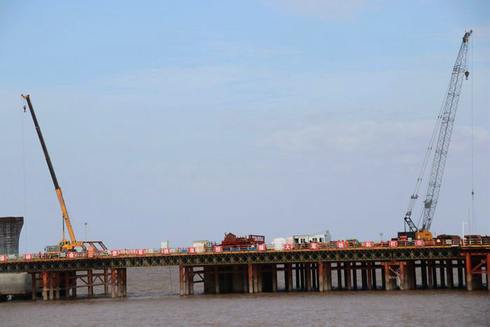 該項(xiàng)目技術(shù)人員精準(zhǔn)的計(jì)算,施工隊(duì)伍精湛的操作,現(xiàn)場(chǎng)管理的100%到位,為成功架設(shè)氣勢(shì)恢宏的鋼棧橋提供了堅(jiān)強(qiáng)保證,同時(shí)有力保障了樁基、承臺(tái)、墩身和墩帽安全施工。