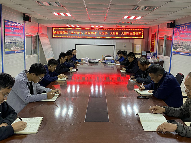圖為精奎項目部召開“從嚴(yán)治虧、從我做起”主題教育反思會現(xiàn)場