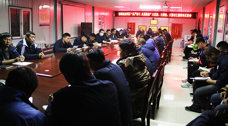 圖為京新高速項(xiàng)目部開(kāi)展“從嚴(yán)治虧、從我做起”主題教育反思會(huì)現(xiàn)場(chǎng)