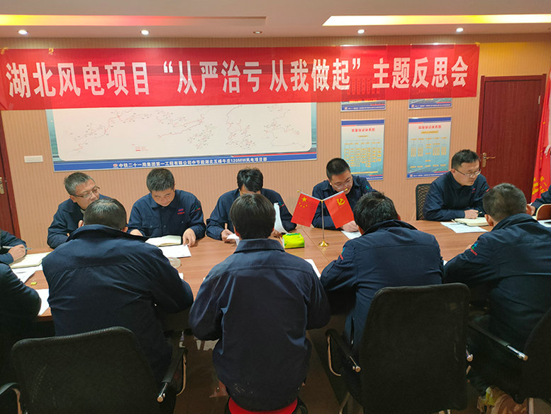 圖為湖北風(fēng)電項(xiàng)目部開展“從嚴(yán)治虧、從我做起”主題教育反思會(huì)現(xiàn)場(chǎng)