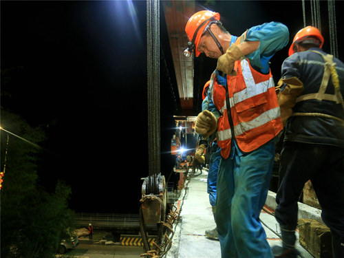 “該橋地處武陵山區(qū)腹地,橫跨烏江天險(xiǎn),橋下水流湍急,加之墩臺(tái)偏高,雨季橋面濕滑,且多為臨近既有線小間距架梁施工,最小間距僅有4米,最后一孔橋體還橫跨車(chē)流密集的319國(guó)道,為此,無(wú)論是從工期節(jié)點(diǎn)還是施工安全來(lái)說(shuō),都給我們帶來(lái)了重重考驗(yàn)。”當(dāng)日,該項(xiàng)目負(fù)責(zé)人表示道。