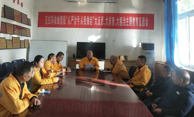 圖為克拉瑪依維管段開(kāi)展“從嚴(yán)治虧、從我做起”主題教育反思會(huì)現(xiàn)場(chǎng)