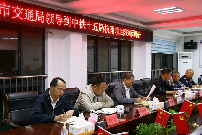 中國鐵路工程建設(shè)網(wǎng)寧波24日電(特約通訊員呂奎元 趙逸民)10月23日下午,寧波市交通局副局長樊獻(xiàn)鵬到中鐵十五局集團(tuán)公司杭甬高速復(fù)線寧波段一期S3標(biāo)段項(xiàng)目部調(diào)研,市交通局建管處處長葉昌勇,寧波市高等級(jí)公路建設(shè)管理中心工程處處長張杰,項(xiàng)目公司有關(guān)領(lǐng)導(dǎo)、公司黨委書記、執(zhí)行董事萬雨晴陪同。