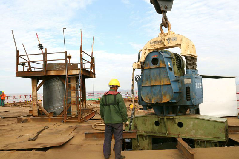 上灌下抽過濾廢護(hù)筒內(nèi)泥渣該項(xiàng)目傲立于海上的14座高度為6米左右的橋墩,成為一道耀眼的風(fēng)景線,吸引了前來檢偵查指導(dǎo)工作的業(yè)主、監(jiān)理的目光,對(duì)親手建造橋墩的本單位員工也是巨大的激勵(lì)和鼓舞。