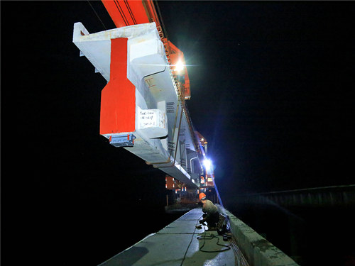 自10月19日開始架設該特大橋以來,全體參建人員在克服重慶地區(qū)秋分時節(jié)多雨大霧、施工地段窄小濕滑、移梁施工工藝繁瑣、安全生產(chǎn)風險大等系列困難的前提下,嚴格執(zhí)行成都局集團臨近既有線施工相關規(guī)定,大力優(yōu)化運梁架梁方案,合理優(yōu)化施工組織結(jié)構,并結(jié)合天氣情況,第一時間倒排鋪架工期,及時做好現(xiàn)場機械設備與人員的調(diào)配等,最終在保工程質(zhì)量、施工安全、環(huán)境保護的前提下,確保了既定節(jié)點目標順利實現(xiàn)。