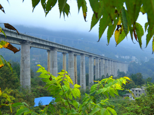 據(jù)中鐵一局鋪架項目部負責人介紹,狗耳泉特大橋位于重慶市彭水自治縣四方村境內(nèi),該橋全長1156.47米,共有36個橋墩,需架設T梁35孔,在建橋梁距既有線5—20米不等,最高墩臺為68米,是該條鐵路的重難點工程,同時也為建設中的渝懷鐵路涪秀二線管內(nèi)最后一座特大橋。