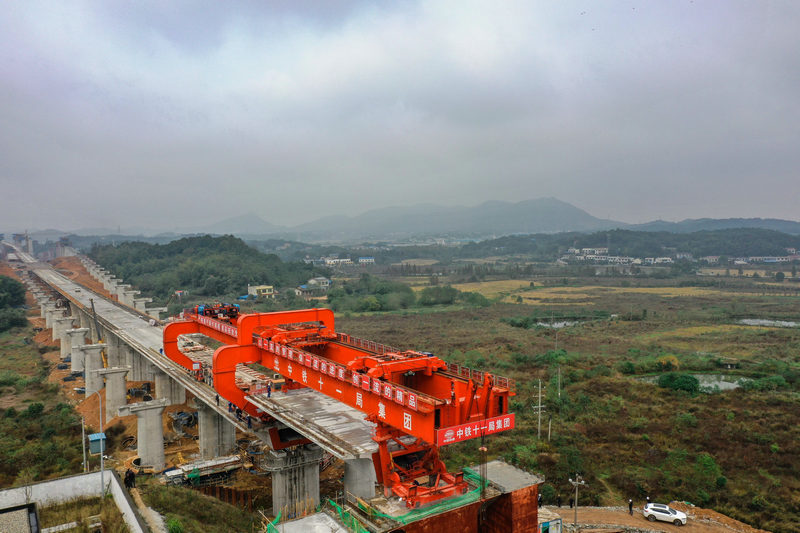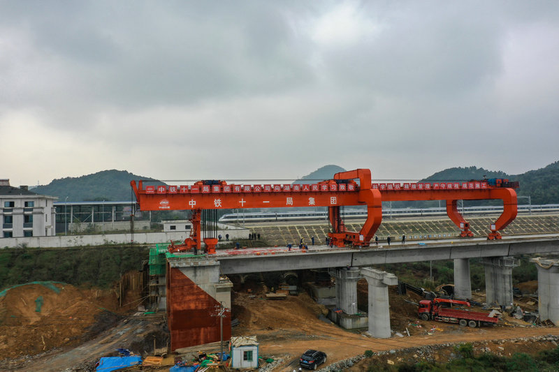 本站湖南長(zhǎng)沙訊:10月31日,常益長(zhǎng)鐵路長(zhǎng)沙西站大橋14#墩-15#臺(tái)箱梁架設(shè)現(xiàn)場(chǎng),常益長(zhǎng)鐵路6標(biāo)長(zhǎng)沙西站方向最后一榀箱梁正在架設(shè)。運(yùn)梁車對(duì)位、架橋機(jī)出梁、箱梁就位、支座錨固,一切都在緊張有序地進(jìn)行著。17時(shí)37分,一道道璀璨的煙花在空中綻放,標(biāo)志著中鐵十一局常益長(zhǎng)鐵路項(xiàng)目經(jīng)理部三分部箱梁架設(shè)取得階段性勝利,一號(hào)架橋機(jī)所承擔(dān)的望城制梁場(chǎng)至長(zhǎng)沙西站方向141榀箱梁架設(shè)順利完成。