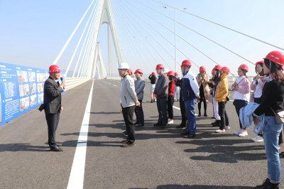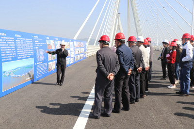 廣東珠海訊:12月1日,由中鐵十一局等單位承建的珠海洪鶴大橋迎來市國資委一行領(lǐng)導(dǎo)參觀檢查,市國資委副主任陳萍帶隊,珠海交通集團(tuán)董事長陳維家、洪鶴公司工程部部長彭衛(wèi)東及各施工單位項目經(jīng)理陪同。