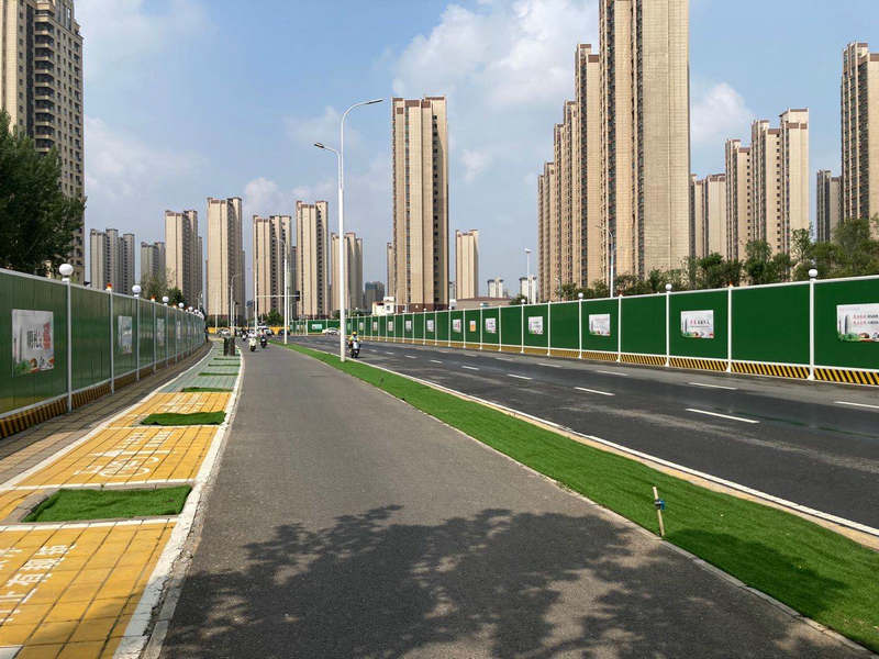 二是統(tǒng)一標(biāo)準(zhǔn),規(guī)范安全質(zhì)量管理。工地對(duì)外的圍擋全部用統(tǒng)一規(guī)格的加厚草綠色鐵皮圍擋,上邊裝球形燈、警示燈,中間貼公益宣傳畫,下邊附警示帶,遠(yuǎn)遠(yuǎn)望去像一道亮麗的風(fēng)景線。工地內(nèi)的護(hù)欄全部用統(tǒng)一規(guī)格的紅白相間的護(hù)欄,像城墻一樣把安全區(qū)域與非安全區(qū)域隔開。臨時(shí)用電柜也套上了極具辨識(shí)度的黃色鐵籠子,把它保護(hù)起來。
