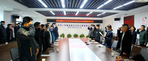 培訓(xùn)結(jié)束后,西安建筑分公司安全質(zhì)量環(huán)保部部長帶領(lǐng)全體人員進(jìn)行了安全宣誓并頒發(fā)了群安員臂章。(李梅)