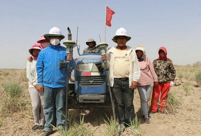 面對(duì)極其惡劣的自然環(huán)境和重重困難,精測隊(duì)黨團(tuán)員、技術(shù)人員們裝好儀器,備上干糧和水,快速向沙漠挺進(jìn)。浩瀚沙海,沙丘起伏,一行人肩扛儀器、手持塔尺、背著干糧和水在大漠中艱難挺進(jìn)。風(fēng)起時(shí),攜裹著細(xì)沙,吹進(jìn)頭發(fā)里,灌進(jìn)耳朵里,漫進(jìn)鞋子里,他們便戴上口罩、飛巾和防風(fēng)沙眼鏡繼續(xù)作業(yè)。日上三竿,中午時(shí)分,毒辣的太陽炙烤著大漠,地表溫度高達(dá)45攝氏度,人就像走在“蒸籠”上,強(qiáng)烈的紫外線灼得皮膚生疼,他們便重新武裝穿上外套,戴上草帽趕往下一個(gè)測量點(diǎn)。中午的大漠仿似一個(gè)“大烤箱”,渾身上下汗水不停流淌,汗水浸透了隊(duì)員們的衣服,片刻又被風(fēng)吹干,變成了硬“鎧甲”,他們臉上時(shí)常掛著一層白色的堿鹽,高溫、風(fēng)沙并不能阻擋他們測量的步伐。