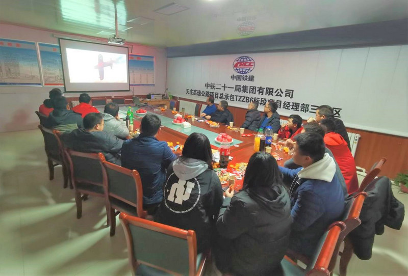 會前,項目部為職工們準(zhǔn)備了瓜子、花生、水果、小吃、飲料等小吃。茶話會上,項目經(jīng)理首先對全體成員及其家人致以新年的問候,對職工在2020年的工作給予了充分肯定,并對大家一年來的辛勤付出和努力表示感謝。隨后,全體職工一起暢所欲言,分享工作中的趣事,發(fā)表來年職業(yè)規(guī)劃等。最后,職工共同觀看了《金剛川》愛國影視作品。