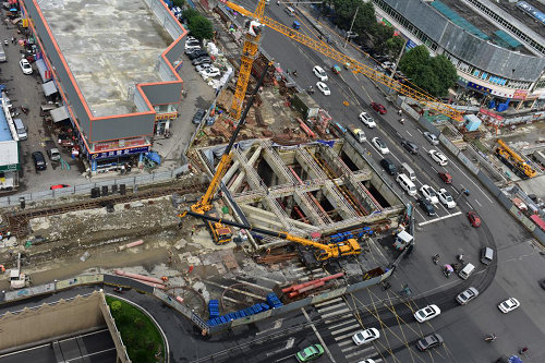 針對金府站施工技術工序轉換多、動態(tài)變位多、重難點施工部位多、變更協(xié)調多等現(xiàn)象,項目部通盤考慮,認真分析,合理布局,做到技術先行,以技術促進度、保質量、節(jié)成本、創(chuàng)效益。為確保順利推進工作量的完成,一是建立責任包保工區(qū)制度,項目部服務工區(qū),分區(qū)分工序負責,做到每個片區(qū)每道工序都有專人把控,第一時間解決施工過程中遇到的問題。同時現(xiàn)場作業(yè)人員配備保持雙班220人,加快施工進度。二是優(yōu)化設計施工方案,針對管線遷改施工、既有圍護樁侵線、建構筑基礎侵線、半蓋側土方開挖及主體施工優(yōu)化設計方案,調整施工工藝,合理安排施工步序,做到保證安全核質量的前提下,節(jié)約工期和成本,創(chuàng)造良好的經(jīng)濟及社會效益。三是嚴格推進標準化工地管理,規(guī)范現(xiàn)場文明施工、設備使用、管線保護、施工質量標準,以標準化手冊和經(jīng)常性標準化教育,做到人人手中有標準,心中有標桿,從嚴管理標準。