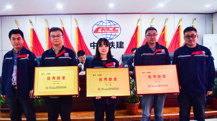 圖為表彰先進個人??????? 王永奇強調(diào)在今后的工作中要有敢為先鋒、能打勝仗的精神,堅定信心,迎難而上,不斷超越目標,全力以赴抓好剩余工程,克缺整治,確保中鐵二十一局六賓三標項目在廣西干一席工程,樹一座豐碑,贏一方市場。