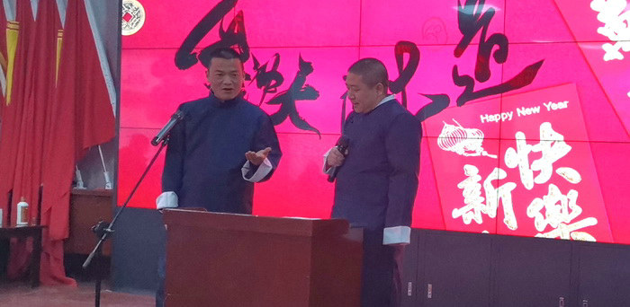 “狼煙起,江山北望,龍卷旗,馬長(zhǎng)嘶,劍氣如霜·····”活動(dòng)在氣勢(shì)磅礴的《精忠報(bào)國(guó)》歌聲中拉開了序幕,周嘉豪、趙祚飛的歌聲鏗鏘有力,感情充沛,激發(fā)出了在場(chǎng)所有人的愛國(guó)熱情;三工區(qū)自編自導(dǎo)自演的“三句半”幽默詼諧,現(xiàn)場(chǎng)掌聲、吶喊聲不絕于耳;徐雨瀟的《故鄉(xiāng)》,唱出了工程人的心聲和思鄉(xiāng)之情;“天莊男團(tuán)”的《韭菜舞》妖嬈中不乏剛毅;小品《風(fēng)雨工程人》、《我為你而來》演員繪聲繪色,角色詮釋到位,贏得臺(tái)下陣陣掌聲;兩位“大師”現(xiàn)場(chǎng)書法、繪畫令大家嘆為觀止;趙祚飛精彩的魔術(shù)表演吸引了全場(chǎng)人的眼球,大家目不轉(zhuǎn)睛,全神貫注的觀看,大家的腦子里有十萬個(gè)大為什么,極力想破解他的魔術(shù)之謎;新學(xué)員蘇崇林一曲《puma》,嘻哈風(fēng)十足,盡顯青春活力;四川、山東、甘肅、天津、東北味《再別康橋》詩歌朗誦,再現(xiàn)了徐志摩筆下一幅幅流動(dòng)的美妙畫面;財(cái)務(wù)部才女宣忱希二胡獨(dú)奏《錦鯉抄》,抑揚(yáng)頓挫,娓娓動(dòng)聽,余音繞梁,令人回味無窮;項(xiàng)目副書記錢海、副經(jīng)理畢鈺親自上陣,為節(jié)目帶來的相聲《牛年說?!罚硌莸糜新曈猩?,寓教于樂,將全場(chǎng)氛圍推向了高潮。活動(dòng)在全體演職人員《明天會(huì)更好》大合唱中落下了帷幕。
