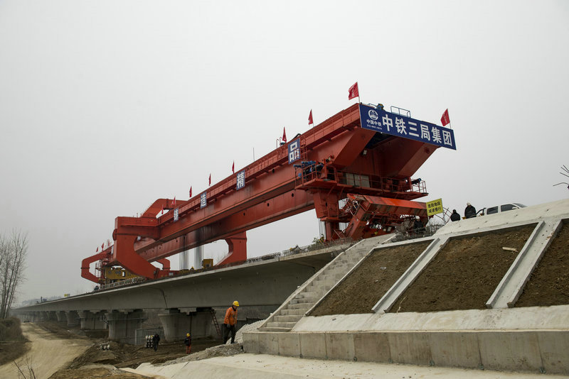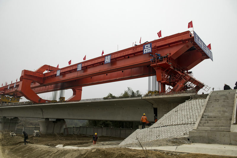 黃黃鐵路2標樂雞塆特大橋末孔落梁就位