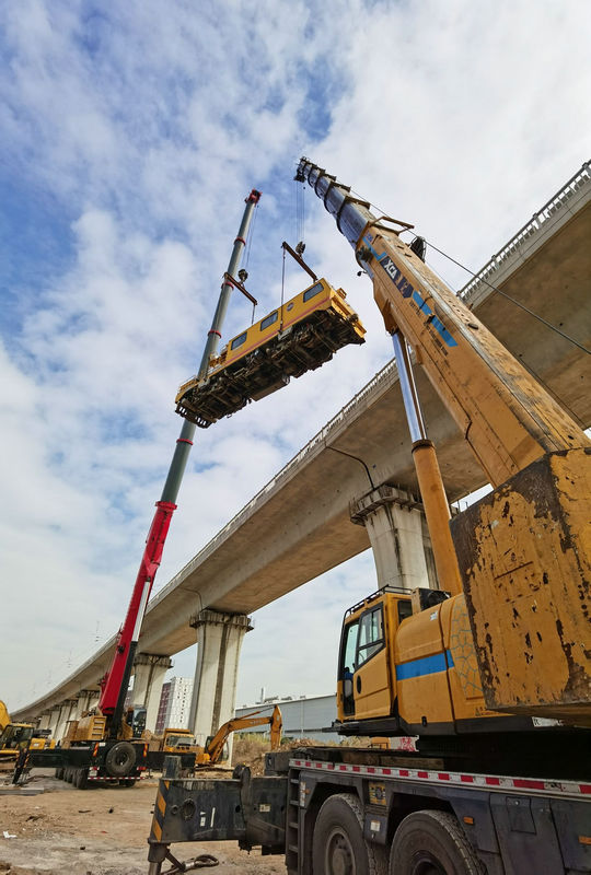 2021年1月4日上午9:00,由中鐵武漢電氣化局集團(tuán)有限公司承建的佛莞佛莞城際廣州南至望洪站后工程項(xiàng)目部在官橋--蓮花山區(qū)間蓮花1號(hào)特大橋(DK19+570-DK19+670)橋梁左線,2臺(tái)220T汽車吊采用雙機(jī)抬吊的方式將軌道車、恒張力放線車從橋下吊裝至橋上左線線路,并運(yùn)行至蓮花站3道停放,順利完成軌道車吊裝進(jìn)場(chǎng)作業(yè)。軌道車的安全進(jìn)場(chǎng)標(biāo)志著佛莞佛莞城際廣州南至望洪站后工程正式進(jìn)入全面施工,為項(xiàng)目生產(chǎn)打開了新局面。