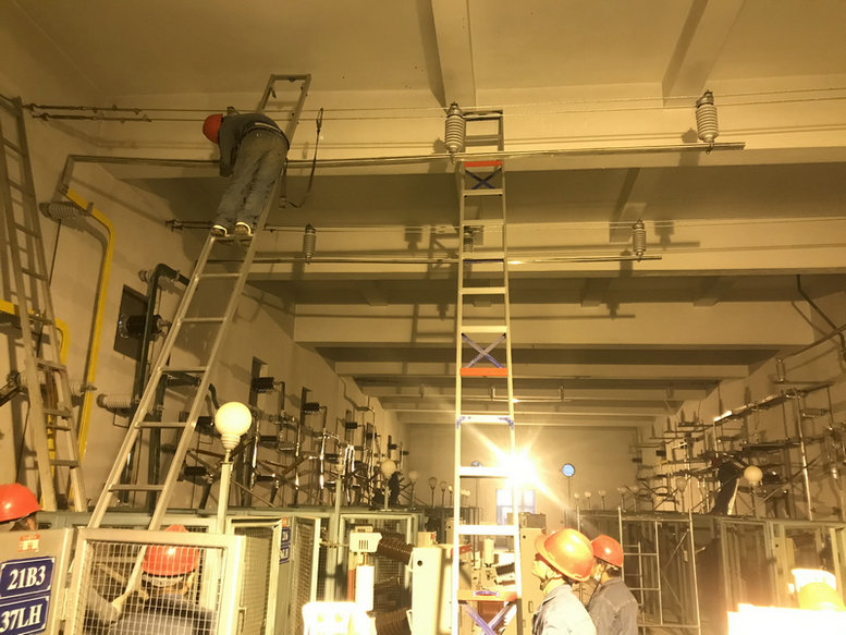 株洲北牽引變電所改造是分階段進(jìn)行的,2020年11月17日完成二臺(tái)牽引變壓器更換。2020年12月4日完成株洲北牽引變電所最后一次方案對(duì)接會(huì),會(huì)議要求我項(xiàng)目部搶在春運(yùn)前完成改造任務(wù),為春運(yùn)保駕護(hù)航。本次高壓室改造是采用新建移動(dòng)高壓室代替既有高壓室,既有高壓室“四進(jìn)八出”,移動(dòng)高壓室采用17條高壓電纜(包換3條備用電纜)進(jìn)行過渡,與既有高壓室共用操作和保護(hù)回路。高壓室改造前先對(duì)移動(dòng)高壓室受電沖擊,試運(yùn)行24h正常后,于2021年1月12日正式開始高壓室改造,經(jīng)一系列倒閘操作后,17:30既有高壓室退出運(yùn)行,高壓室改造內(nèi)容主要有單母排改為雙母排共更換512米、高壓斷路器16臺(tái)、支柱式絕緣子150組,穿墻套管更換12支,所有網(wǎng)柵噴漆,室壓室內(nèi)墻面粉刷等。既有高壓室改造工序多、施工難度大、交叉施工干擾多,項(xiàng)目領(lǐng)導(dǎo)小組審核制定安全可靠的日施工方案,精心組織精兵強(qiáng)將上場,投入施工人員30多人,分成9個(gè)小組有條不紊進(jìn)行每道工序改造,每道工序合格后再進(jìn)行下道工序。為確保株洲樞紐行車安全,降低停電時(shí)間過長的風(fēng)險(xiǎn),盡量縮短高壓室改造時(shí)間,京廣項(xiàng)目作業(yè)人員挑燈夜戰(zhàn),不畏寒冷饑餓,項(xiàng)目班子成員每日現(xiàn)場安全盯控,公司專家親自對(duì)技術(shù)、安全、質(zhì)量把關(guān),歷經(jīng)100小時(shí)晝夜連續(xù)作業(yè),按規(guī)定的電氣試驗(yàn)后,所內(nèi)設(shè)備參數(shù)一切正常,凌晨1點(diǎn)12分高壓室成功受電,比原計(jì)劃提前2天完成任務(wù)。株洲北牽引變電所改造圓滿完成,展現(xiàn)了武電人的中鐵速度,展現(xiàn)了央企當(dāng)擔(dān)。