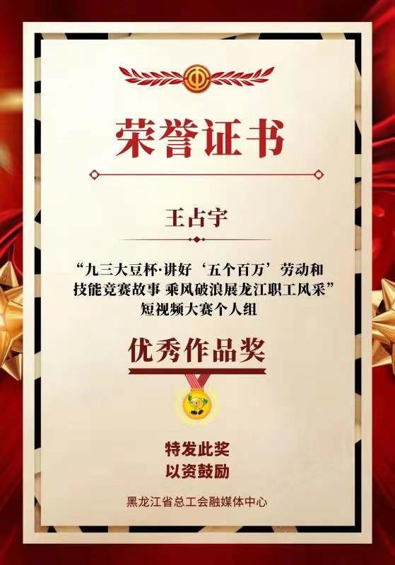 由黑龍江省總工會主辦、黑龍江省總工會融媒體中心承辦的短視頻大賽,緊緊圍繞“造就一支宏大的新型產(chǎn)業(yè)工人大軍,當好主人翁、建功新龍江”的全省工會工作主線,突出展示“五個百萬” 職工勞動和技能競賽涌現(xiàn)出的先進典型和經(jīng)驗。鏡頭對準基層,以一線職工為主,多層次、多角度呈現(xiàn)了廣大職工群眾熱火朝天的勞動場景,以及職工創(chuàng)業(yè)奮斗的精彩瞬間和感人故事。