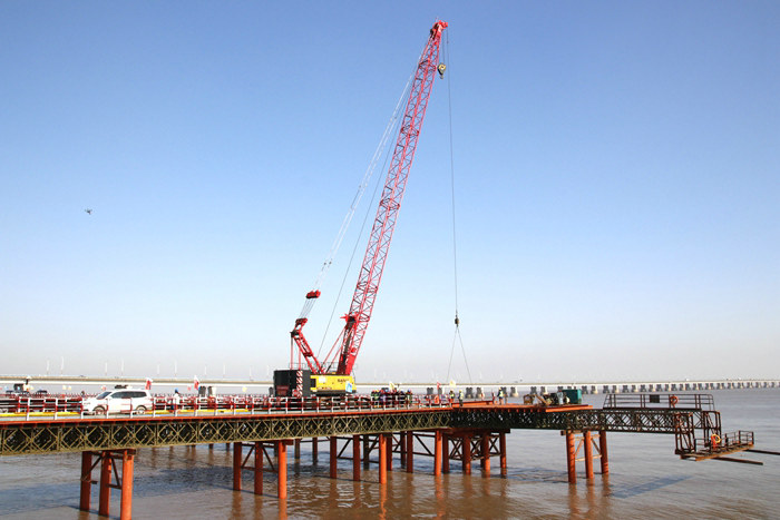 在施工中,該項(xiàng)目強(qiáng)化質(zhì)量管理,嚴(yán)格按照設(shè)計(jì)規(guī)范操作,無論打插鋼管樁,還是焊接、安裝等多個(gè)環(huán)節(jié),質(zhì)量都很過硬,一臺(tái)臺(tái)上百噸重型運(yùn)輸材料的汽車、履帶吊等行走在棧橋上,棧橋紋絲不動(dòng)。