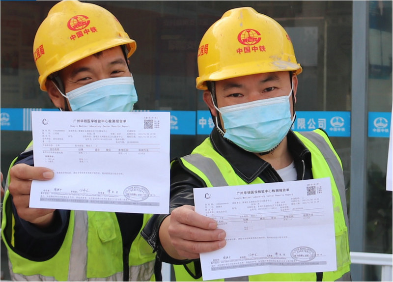 過(guò)年回家是雷打不動(dòng)的規(guī)律,而現(xiàn)今減緩大規(guī)模人口流動(dòng)卻是國(guó)家疫情防控的重要措施之一。為此,項(xiàng)目部一方面積極響應(yīng)國(guó)家號(hào)召大力宣傳防疫知識(shí),另一方面勸導(dǎo)非特殊人員就地過(guò)年,經(jīng)過(guò)收集民工意見及排查,確定30名同鄉(xiāng)民工確因家中尚有老人、小孩,須返鄉(xiāng)過(guò)年。為了進(jìn)一步確保返鄉(xiāng)民工路途中的交通安全,提高防疫安全系數(shù),項(xiàng)目部超前謀劃,聯(lián)系定點(diǎn)核酸檢測(cè)單位黃埔造船廠醫(yī)院于1月29日到項(xiàng)目為返鄉(xiāng)的30名民工集體進(jìn)行了新冠病毒核酸檢測(cè),并與廣東中旅交通發(fā)展有限公司簽訂租車合同,租賃一輛37人座的大巴車將須返鄉(xiāng)的民工點(diǎn)對(duì)點(diǎn)進(jìn)行直達(dá)護(hù)送。