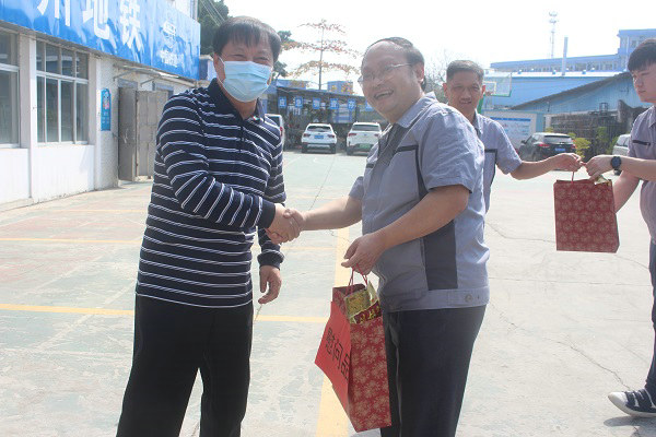 2月8日上午,中鐵十一局集團(tuán)二級(jí)咨詢臧丹代表集團(tuán)黨委、行政、工會(huì)來到廣州地鐵十八和二十二號(hào)線五分部施工現(xiàn)場(chǎng),對(duì)春節(jié)仍奮戰(zhàn)在施工一線的人員進(jìn)行了慰問,送來了大米、面粉、食油等物品,向春節(jié)堅(jiān)守在施工一線員工表示崇高的敬意和親切的問候。臧丹咨詢向全體職工轉(zhuǎn)達(dá)了十一局集團(tuán)領(lǐng)導(dǎo)的親切關(guān)懷,并叮囑他們嚴(yán)格做好疫情防控,歡度牛年新春,在新的一年“牛”轉(zhuǎn)乾坤。