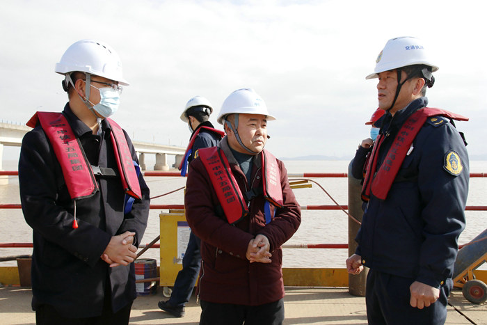 林學華一行到杭甬項目濱?;ネ⒔徊榭戳苏诘跹b內(nèi)環(huán)鋼棧橋貝雷梁、橋面板施工場面,查看了打插鋼護筒、鉆孔樁施工情況。公司副總工程師兼杭甬項目負責人黃偉向林學華匯報了施工進展情況和春節(jié)前、春節(jié)期間工作安排。他說,在安全方面采取夜間停止作業(yè),白天滿負荷運轉(zhuǎn)的辦法,保證春節(jié)期間不停工,工地主動留下就地過年,堅持節(jié)日施工人員有200多人,既要確保員工在絕對安全的前提下施工,又要保持連續(xù)施工,春節(jié)期間在進度上雖有一定影響,但不是太大,年后一些回家過年人員重返崗位,掀起大干高潮,進度很快會趕上去的,月完成產(chǎn)值1個億不是難事。留在項目的人員,我們最大限度地安排好他們的生活,還給員工發(fā)過節(jié)費,并開展一些文化活動,滿足員工的精神和物質(zhì)需求。