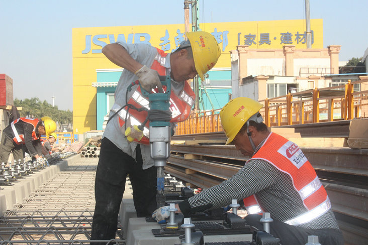 在施工中,分部與所屬各工區(qū)為防止施工人員節(jié)日在工地上精神分散,麻痹大意,堅(jiān)持班前教育、領(lǐng)導(dǎo)干部帶班、值班、巡查制度,對(duì)施工細(xì)致安排,精心組織,嚴(yán)格管控,使施工現(xiàn)場(chǎng)呈現(xiàn)出有條不紊,安全高效,熱火朝天的景象,擔(dān)負(fù)十八號(hào)線軌道工程施工四工區(qū),3000多名施工人員加班加點(diǎn),日夜奮戰(zhàn),每天鋪軌1公里,焊軌2.1公里速度向前推進(jìn),2月16日橫番3號(hào)中間風(fēng)井-番禺廣場(chǎng)站-隴枕停車場(chǎng)提前短軌貫通。擔(dān)負(fù)二十二號(hào)線電務(wù)工程和番禺廣場(chǎng)站機(jī)電施工五工區(qū),600多名施工人員爭(zhēng)分奪秒,搶趕進(jìn)度,超額完成當(dāng)天施工計(jì)劃。擔(dān)負(fù)隴枕停車場(chǎng)施工三工區(qū),節(jié)日期間一鼓作氣,善始善終,精益求精,抓好收尾工程配套完善施工,為“三權(quán)移交”打好基礎(chǔ)。在分部和所屬各工區(qū)上下的努力下,實(shí)現(xiàn)了春節(jié)施工不停歇,保持施工大干態(tài)勢(shì);施工不松勁,保持高昂士氣;施工不減產(chǎn),保持施工計(jì)劃如期完成“三不三保”目標(biāo)。
