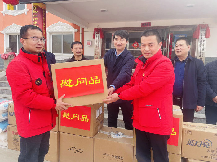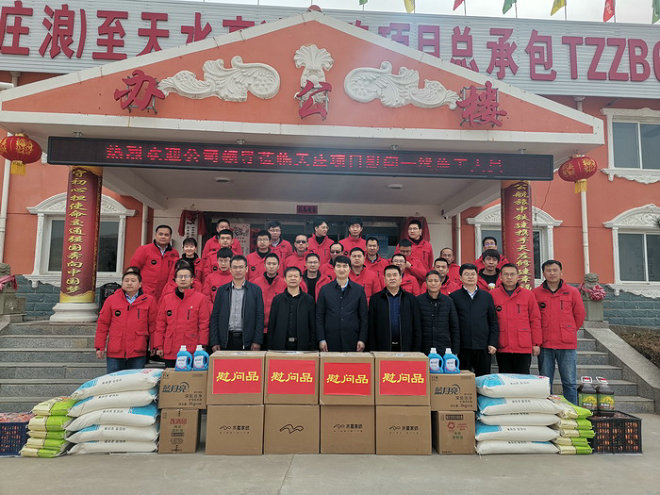 公司領(lǐng)導(dǎo)為項(xiàng)目職工發(fā)放慰問品