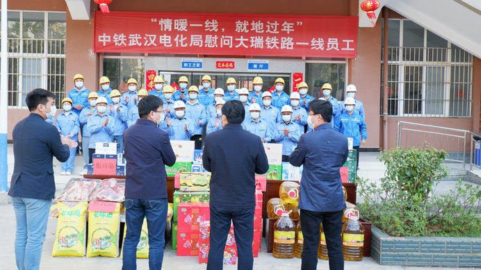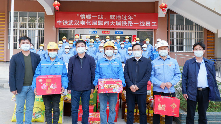 歲序更新,春回大地。元宵佳節(jié)悄然臨近,2月23日,中鐵武漢電氣化局集團公司黨委書記、董事長竇保信、副總經(jīng)理劉剛等一行領(lǐng)導到云南省保山市大瑞項目部駐地慰問春節(jié)期間堅守崗位、就地過年的一線員工,并致以新春祝福和親切的問候!
