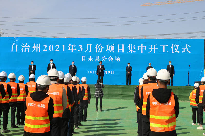 3月9日上午,自治州2021年3月項目集中開工儀式且末縣分會場在中鐵二十一局一公司水岸林邸小區(qū)建設(shè)項目隆重舉行,且末縣境內(nèi)8個重點項目集中開工??h委常務(wù),常務(wù)副縣長米丹軍、副縣長迪里夏提等縣領(lǐng)導(dǎo)出席了開工儀式,中鐵二十一局一公司水岸林邸小區(qū)建設(shè)項目項目經(jīng)理王立博作為施工代表作了表態(tài)發(fā)言。