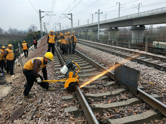 商丘市方域路、宋城路涉鐵立交新建工程項(xiàng)目此次那慢行施工長(zhǎng)達(dá)78天,施工期間利用上行、下行維修天窗分別封鎖京九線商丘南站-伊尹站間上行或下行線,進(jìn)行應(yīng)力放散、方正枕木、更換橋枕、護(hù)輪軌、吊車吊梁、接觸網(wǎng)改造等施工。