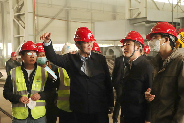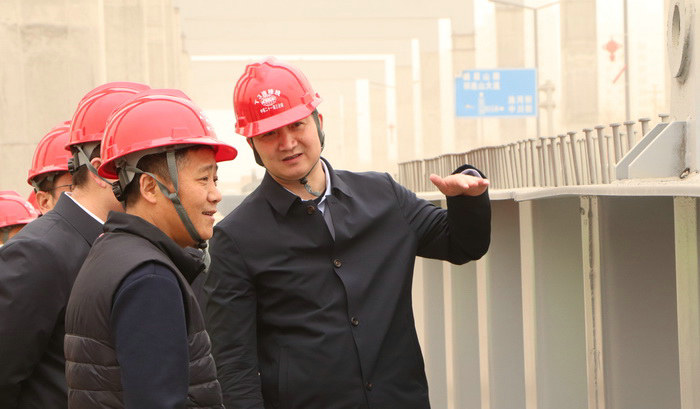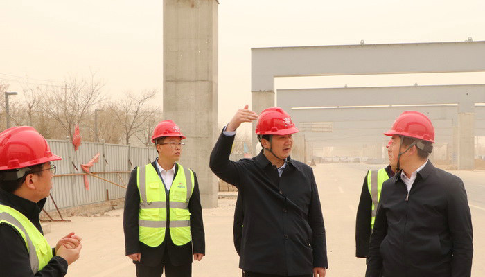 圖為王小慶(右一)查看工程情況 項(xiàng)目經(jīng)理王亞鋒表示,絕不辜負(fù)公司領(lǐng)導(dǎo)的重托和要求,一定帶領(lǐng)項(xiàng)目全員排除重重困難,將T3航站樓連接線打造成蘭州新區(qū)的亮點(diǎn)工程。