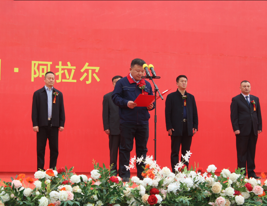 圖為新疆生產(chǎn)建設(shè)兵團第一師阿拉爾市黨委書記、政委盧躍東為開工儀式致辭