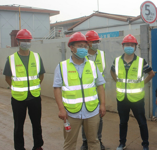 黨支部書記胡春(左2)總工程師明月月(右1)安全總監(jiān)田進(左1)在現(xiàn)場檢查安全質(zhì)量管理工作情況