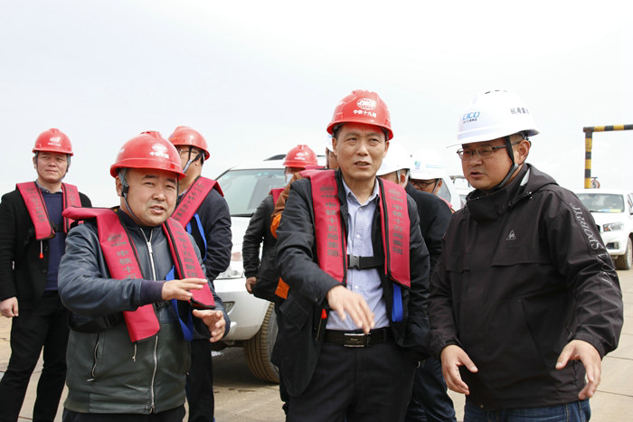 張希一行查看了位于金堂大橋兩側(cè)的濱海互通棧橋施工、89號(hào)墩0號(hào)塊連續(xù)梁和濱海高架橋48號(hào)墩作業(yè)情況,查看了防護(hù)欄、臨時(shí)用電、承臺(tái)安全爬梯、高空吊裝、棧橋的安全性,以及履帶吊、重型汽車吊、鉆孔機(jī)等特種設(shè)備運(yùn)行情況。公司副總工程師兼杭甬項(xiàng)目負(fù)責(zé)人黃偉匯報(bào)了開工以來安全知識(shí)培訓(xùn)、安全宣傳教育、安全資金和人員投入、監(jiān)督管理等情況,并回答了張希的一個(gè)個(gè)提問。