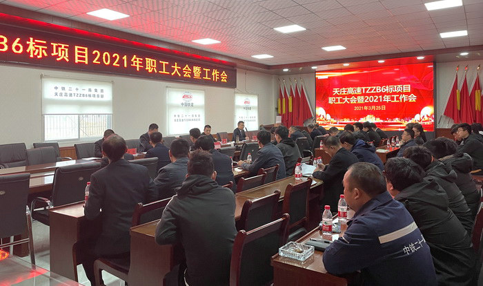 本網(wǎng)甘肅天水3月28日訊(通訊員 彭英 曹倩)3月25日,中鐵二十一局天莊高速TZZB6標(biāo)項(xiàng)目2021年職工大會(huì)暨工作會(huì)在莊重的國(guó)歌聲中拉開(kāi)序幕。天莊高速項(xiàng)目全體職工、勞務(wù)派遣工50余人參會(huì),會(huì)議由項(xiàng)目副書(shū)記、工委主任錢海主持。