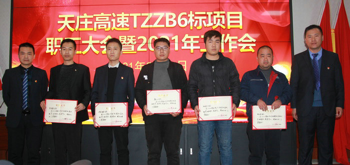 2020年,項(xiàng)目全體參建人員在集團(tuán)公司、公司的正確領(lǐng)導(dǎo)下,在業(yè)主、監(jiān)理及地方政府的大力支持和幫助下,敢于擔(dān)當(dāng),開(kāi)拓進(jìn)取,主動(dòng)作為,奮勇前進(jìn),扎實(shí)開(kāi)展集團(tuán)公司“項(xiàng)目管控創(chuàng)效年”、公司“守正創(chuàng)新 管控創(chuàng)效”兩級(jí)主題教育活動(dòng),按照項(xiàng)目公司打造PPP高速公路示范項(xiàng)目、創(chuàng)平安工地、打造品質(zhì)工程的理念,緊緊圍繞施工生產(chǎn)這個(gè)中心和“創(chuàng)譽(yù)創(chuàng)效”目標(biāo),結(jié)合項(xiàng)目實(shí)際情況,創(chuàng)新管理,更新理念,抓安全、保質(zhì)量、促進(jìn)度、提品質(zhì),助推項(xiàng)目施工生產(chǎn)穩(wěn)步推進(jìn),取得了可喜的成績(jī)。為總結(jié)經(jīng)驗(yàn),進(jìn)一步激發(fā)全體參建員工的各項(xiàng)潛能,項(xiàng)目部授予財(cái)務(wù)部、試驗(yàn)室“先進(jìn)部室”榮譽(yù)稱號(hào),各獎(jiǎng)勵(lì)人民幣2000元,頒發(fā)獎(jiǎng)牌一塊;授予焦吉幸等5名同志“先進(jìn)個(gè)人”稱號(hào),各獎(jiǎng)勵(lì)人民幣1000元,頒發(fā)榮譽(yù)證書(shū)一本。大會(huì)明確了2021年總體思路、工作目標(biāo),號(hào)召項(xiàng)目全體干部職工以公司“四會(huì)”精神為引領(lǐng),以改革創(chuàng)新、提質(zhì)增效、創(chuàng)譽(yù)創(chuàng)優(yōu)為己任,狠抓施工生產(chǎn)和成本管控,為全面完成天莊高速年度目標(biāo)任務(wù)、公司實(shí)現(xiàn)跨越式發(fā)展而努力奮斗。
