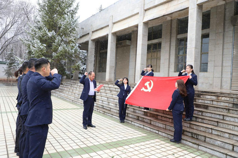西寧市中國工農(nóng)紅軍西路軍紀(jì)念陵園由烈士群雕塑像、紀(jì)念碑、烈士墓、中國工農(nóng)紅軍西路軍紀(jì)念館等組成。黨支部書記帶領(lǐng)黨員干部來到紀(jì)念碑前,為安葬在此處的840位紅軍烈士獻(xiàn)上鮮花,表達(dá)哀思。在西路軍紀(jì)念館前,面對鮮紅的黨旗,全體黨員莊重的舉起右手重溫了入黨誓詞。隨后,大家到紀(jì)念館展廳內(nèi)進(jìn)行參觀,紀(jì)念館內(nèi)珍藏的寶貴史料,再現(xiàn)了中國工農(nóng)紅軍西路軍堅貞不屈的革命英雄主義精神,譜寫了一曲中國革命歷史的壯麗篇章。