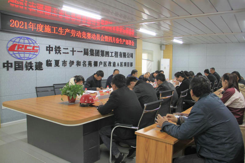 4月7日,中鐵二十一局四公司臨夏市伊和名苑項目部召開2021年度施工生產(chǎn)勞動競賽動員會暨四月份生產(chǎn)部署會,項目部領導班子、全體干部職工、各勞務隊負責人參加了會議。