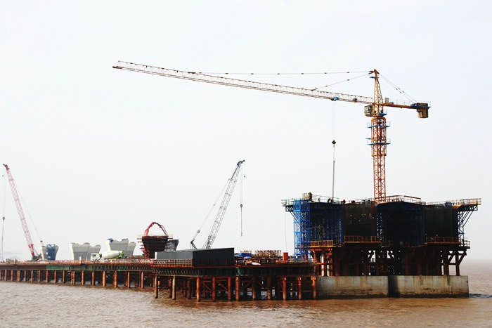 杭甬項(xiàng)目濱海高架跨輸油管135米連續(xù)梁,邊中跨比為0.574,主梁采用上下行方向分幅布置。橋梁起點(diǎn)樁號(hào)為K35+240,終點(diǎn)樁號(hào)為K35+530,其中K35+240.000-K35+296.441位于直線第一跨半徑為6000米的圓曲線上。橋梁為雙向2%橫坡,大跨橋上部結(jié)構(gòu)采用變截面預(yù)應(yīng)力混凝土連續(xù)梁,采用掛籃對(duì)稱懸臂澆筑施工方案,下部結(jié)構(gòu)為實(shí)心片墩加鉆孔灌注樁基礎(chǔ)。墩與主梁之間設(shè)置減隔震支座。主梁采用單箱單室變梁預(yù)應(yīng)力混凝土箱梁直腹板。箱梁底板下緣保持水平。單幅箱梁頂板寬16.3米,底板寬7.3米。跨中梁高3.2m,根部梁高8.5米。跨中底板厚30cm,根部底板厚90厘米,按拋物線過渡。主墩處主梁設(shè)置3米厚中橫梁,過渡墩頂處設(shè)置2.3米厚端橫梁。左幅為混凝土連續(xù)澆注,混凝土方量為450立方,12小時(shí)連續(xù)澆注。同時(shí),梁面周邊設(shè)置1.2米防護(hù)欄,并掛密目網(wǎng),下設(shè)從地面通向頂部可供施工人員上下的“樓梯”式踏腳板。為保證施工的順利進(jìn)行,項(xiàng)目部邀請(qǐng)寧波海事局、中石油寧波分公司有關(guān)專家準(zhǔn)確查找直徑4.5米的輸油管道,位置確定后,組織技術(shù)公關(guān)小組查閱資料、反復(fù)研討論證,并由工程部編寫施工方案。經(jīng)過技術(shù)人員近白天的艱苦奮戰(zhàn),長(zhǎng)達(dá)169頁的濱海高架橋跨輸油管135米連續(xù)梁施工技術(shù)方案初稿出籠,經(jīng)業(yè)主組織的各方專家評(píng)審,項(xiàng)目部結(jié)合專家的意見,最后拿出的方案一致通過專家評(píng)審。項(xiàng)目部按照方案緊鑼密鼓地進(jìn)行施工,每一道工序都經(jīng)監(jiān)理嚴(yán)格檢查并簽字認(rèn)可。在完成樁基、承臺(tái)、支座、支架安裝預(yù)壓、綁扎鋼筋籠、穿張拉預(yù)應(yīng)力鋼絞線、立模等幾十道復(fù)雜的工序完成后,正式進(jìn)入混凝土澆筑施工。從昨天下午1點(diǎn)到今天下午1點(diǎn),連續(xù)24個(gè)小時(shí)晝夜作業(yè),終將0號(hào)塊左幅順利澆注完畢。