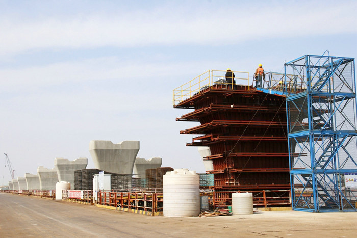 該公司杭甬項目部高起點打造優(yōu)質工程,公司副總工程師兼杭甬項目負責人黃偉在施工動員大會上明確表態(tài):“我們要干就必須干出優(yōu)質工程,這關乎十五局在浙江的發(fā)展,沒有任何退路!”這句擲地有聲的話讓員工有了足夠的信心。項目部組建了一個綜合管理能力強的團隊,擁有管理、技術等各方面人才。同時通過公開招標,擇優(yōu)選用20多支可承擔經濟風險的棧橋、下部結構、鋼筋和鋼護筒加工施工隊,錄用50多家有資金墊付能力、可提供優(yōu)質服務的材料供應商。其次組建了一座大型混凝土拌合站、1座上萬平方米的鋼筋、鋼護筒加工場。在施工、材料供應過程中,對施工能力達不到要求的施工隊,供應材料不及時,履行合同不到位的供應商堅決清場,絕不允許名不副實、濫竽充數(shù)者存在。正確的管理理念和有力的舉措,為優(yōu)質高效建設濱海高架、濱海互通打下了堅實基礎。