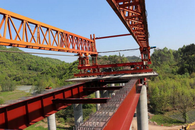 圖為架橋機(jī)架梁施工 為加快施工步伐,提升實體質(zhì)量,項目部各包保部室責(zé)任人堅持“三個到位”:一是落實節(jié)點考核到位,做到當(dāng)日節(jié)點當(dāng)日考核,當(dāng)日公布獎罰結(jié)果;二是技術(shù)人員現(xiàn)場監(jiān)督到位,各節(jié)點技術(shù)人員值班堅持旁站監(jiān)督,下沉現(xiàn)場,及時協(xié)調(diào)溝通機(jī)械配置和施工中遇到的難題,為施工節(jié)點的完成提供保障;三是強(qiáng)化完成施工節(jié)點到位,每天的施工節(jié)點在確保質(zhì)量標(biāo)準(zhǔn)和技術(shù)規(guī)范外,計劃節(jié)點加班加點必須完成,確保節(jié)點目標(biāo)不落空。由于措施得當(dāng),包保責(zé)任人職責(zé)明確,責(zé)任心到位,施工節(jié)點目標(biāo)均完成95%以上,施工節(jié)奏不斷加快。