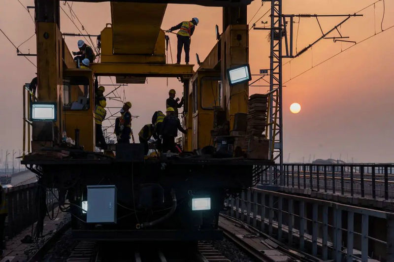 4月19日,在天津港南疆鐵路大橋上,隨著既有梁的拆除、新梁的架設(shè)完成和整體線路恢復(fù),公司圓滿完成天津港南疆鐵路大橋T梁改造任務(wù)。